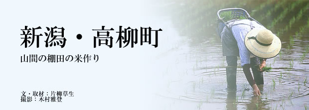ユーラシア大陸の東に位置する細長い日本列島は、その七割が山地だ。平地が少ない土地柄、山の傾斜面や扇状地などを利用して、各地に水田を開いてきた。斜面をならして幾重にも段々を連ね、畦を作って水をたたえた。1999年、農林水産省が認定した「棚田百選」は134の地区。景観保護に加え、自然のダムにたとえられる水源涵養と土砂崩れ防止、生態系保護など棚田の機能を見直し、生産者への激励を込めたのだという。新潟県高柳町は、黒姫山のふもとに位置する小さな町だが、3ヶ所が百選に選ばれた。 |